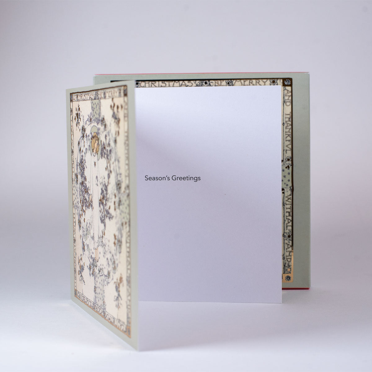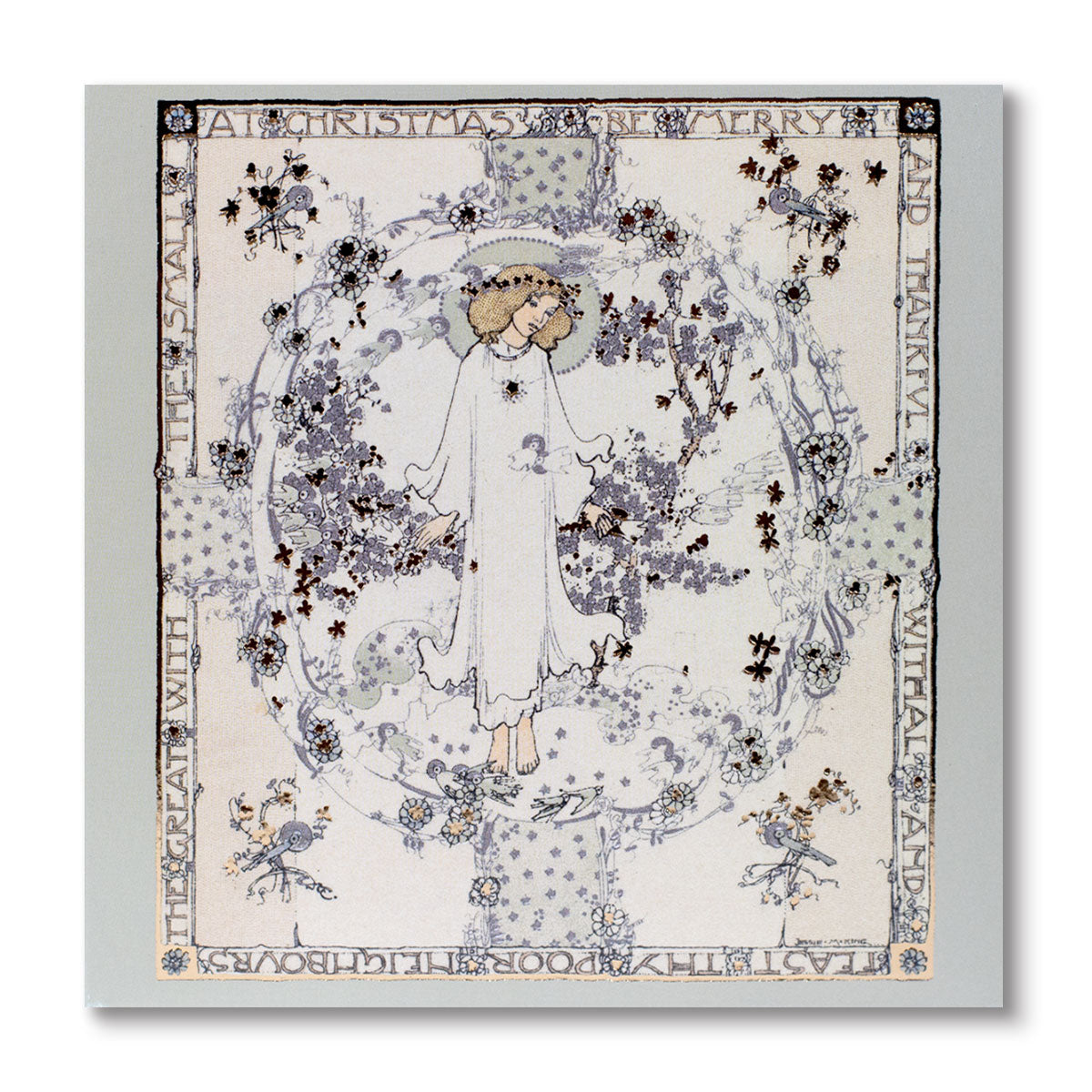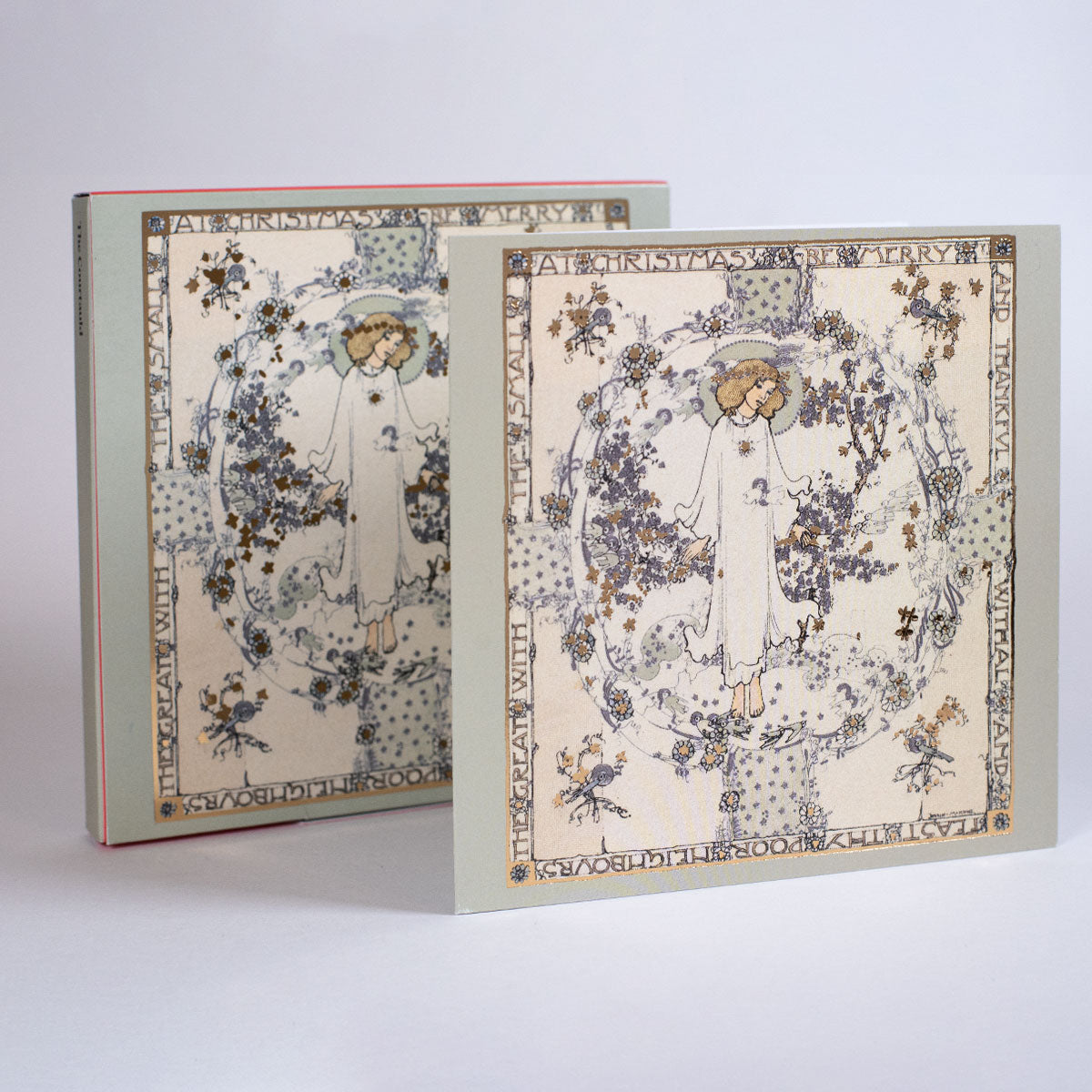 Set of 10 cards with envelop this delicate Jessie Marion King (1875-1949) is perfect to wish Merry Christmas to close friends and family. Beautiful gold outlines and typography, with simple note in the inside.