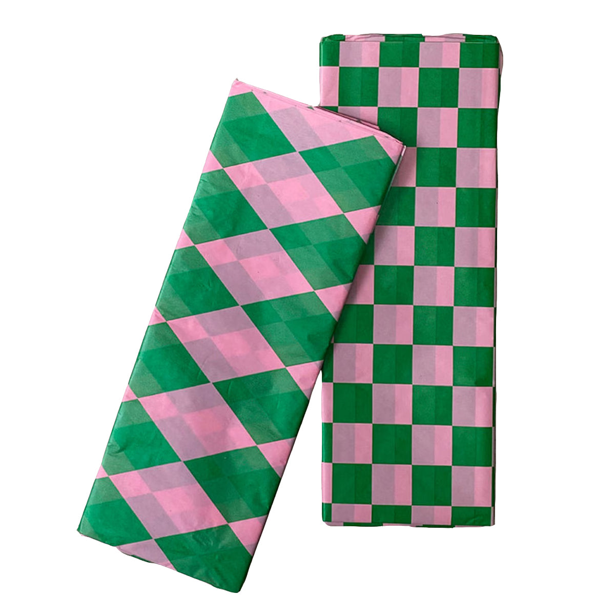 • Load image into Gallery viewer, Tissue Paper Pack Green & Pink Diamond & Check