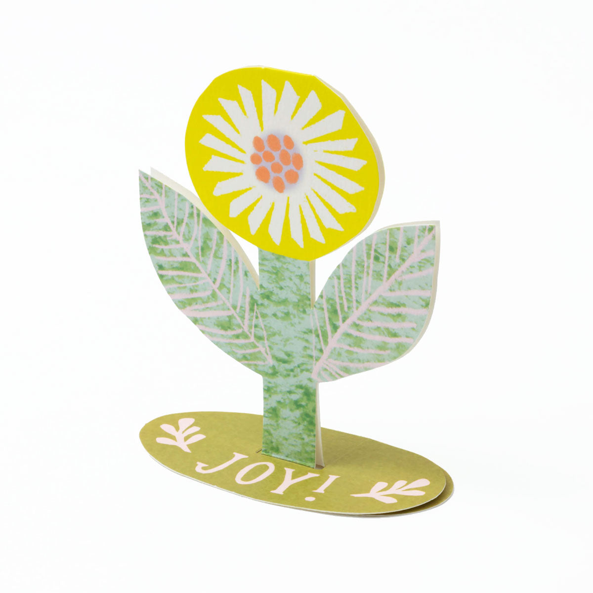 A sunny yellow flower that brings Joy! This beautiful yellow flower card folds out to become free standing with the message 'Joy!' on the base. Send some happiness with this sustainable flower and brighten a loved ones home.